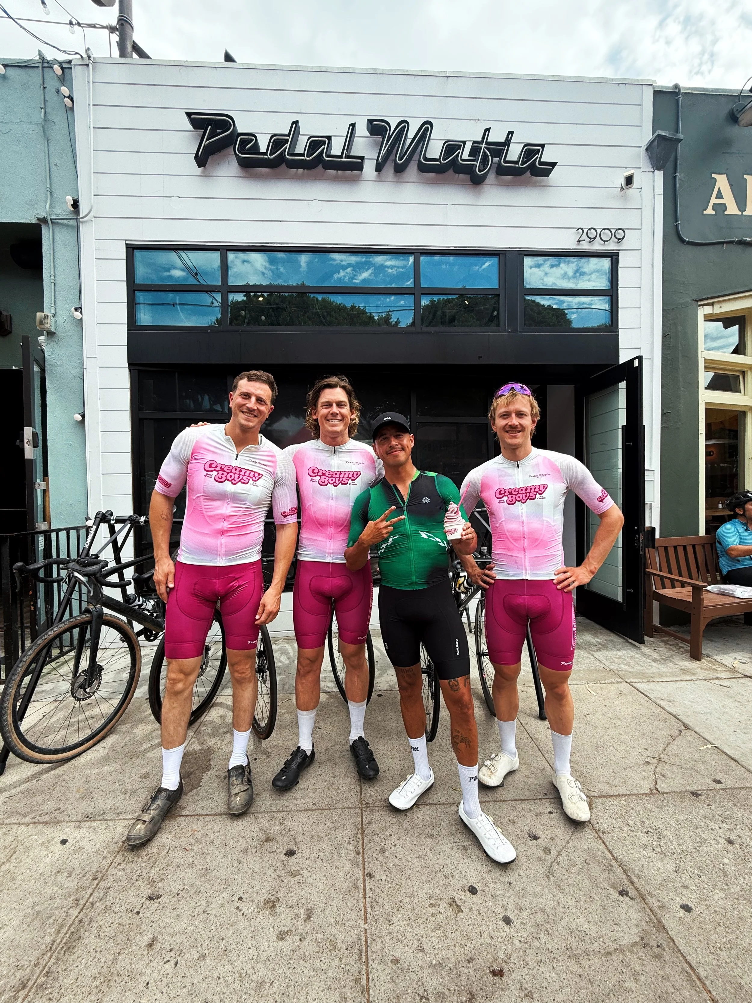 Cycling Jersey $80.00 Cycling Bibshorts $100.00 Baby Tee $30.00 I Got Creamed Bumper Sticker $5.00 Crystal's Tee $35.00 Hot Rod Tee $30.00 Open Late Hoodie - Cream $55.00 Sold Out Open Late Hoodie - Pink $55.00 Sold Out Tank Top $25.00 Sold Out Merch